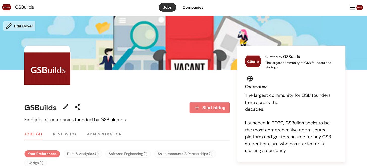 As always, we’d love to hear from you. If you’ve got ideas or feedback, feel free to ping us at team@gsbuilds.co. We’re also looking to fill a number of roles at GSBuilds - including a Head of Partnerships and a Head of Founder Community - to continue bringing new resources & events to the thousands of GSB founders & fund managers out there.